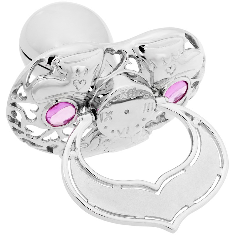 Zur Geburt, Taufe oder Schuleinführung das passende Geschenk. Lollino Klassik bietet Platz für den ersten Zahn, die erste Locke oder eine liebe Botschaft. Durch Ihre Wunschgravur machen Sie den Lollino Klassik zu einem besonderen Geschenk mit realem Wert. Hochwertig und in liebevoller Handarbeit aus 925/- Sterling Silber gefertigt und durch das Rhodium gesondert geschützt vor äußeren Einflüssen. Geben Sie Lollino weiter an Menschen die Sie lieben, das richtige für die Erinnerungsbox Ihres kleinen Schatzes. Auf der integrierten Geburtsuhr wird die Geburtszeit graviert. Name, Gewicht, Geburtsdatum und Größe gravieren wir auf dem Bügel. Der Nuckel ist eine wahre Schatzkiste und bietet Platz für etwas Persönliches von Ihrem lieben Schatz.