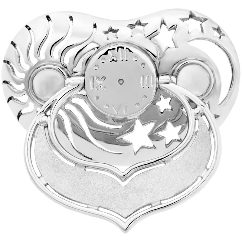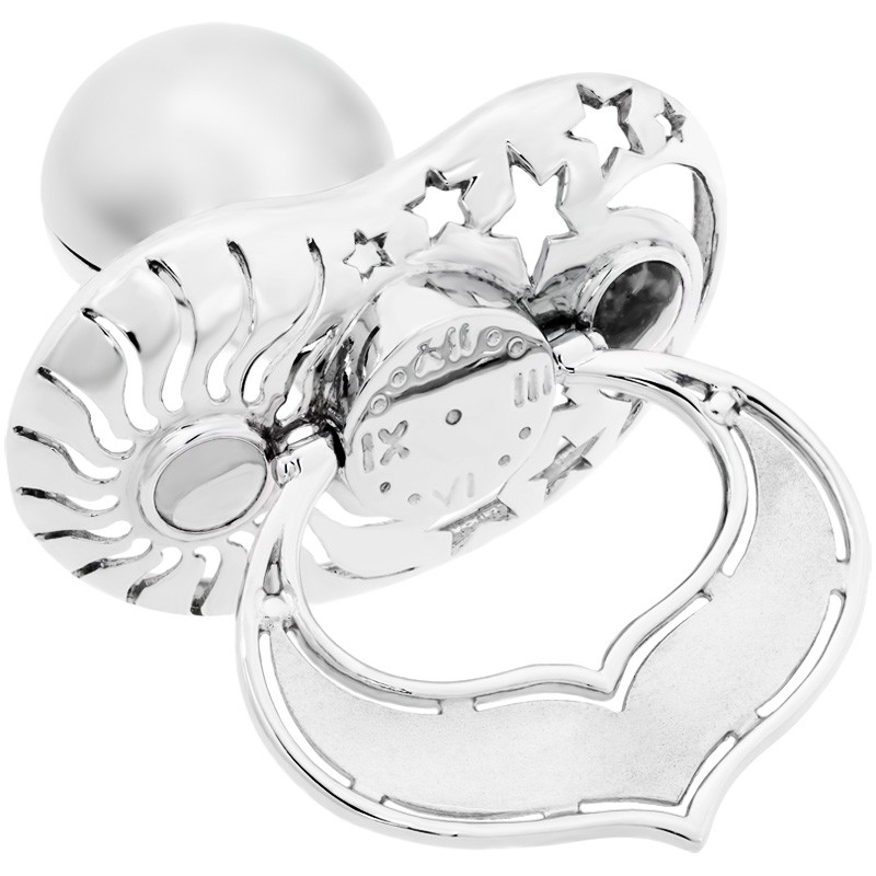Zur Geburt, Taufe oder Schuleinführung das passende Geschenk. Lollino Klassik bietet Platz für den ersten Zahn, die erste Locke oder eine liebe Botschaft. Durch Ihre Wunschgravur machen Sie den Lollino Klassik zu einem besonderen Geschenk mit realem Wert. Hochwertig und in liebevoller Handarbeit aus 925/- Sterling Silber gefertigt und durch das Rhodium gesondert geschützt vor äußeren Einflüssen. Geben Sie Lollino weiter an Menschen die Sie lieben, das richtige für die Erinnerungsbox Ihres kleinen Schatzes. Auf der integrierten Geburtsuhr wird die Geburtszeit graviert. Name, Gewicht, Geburtsdatum und Größe gravieren wir auf dem Bügel. Der Nuckel ist eine wahre Schatzkiste und bietet Platz für etwas Persönliches von Ihrem lieben Schatz.